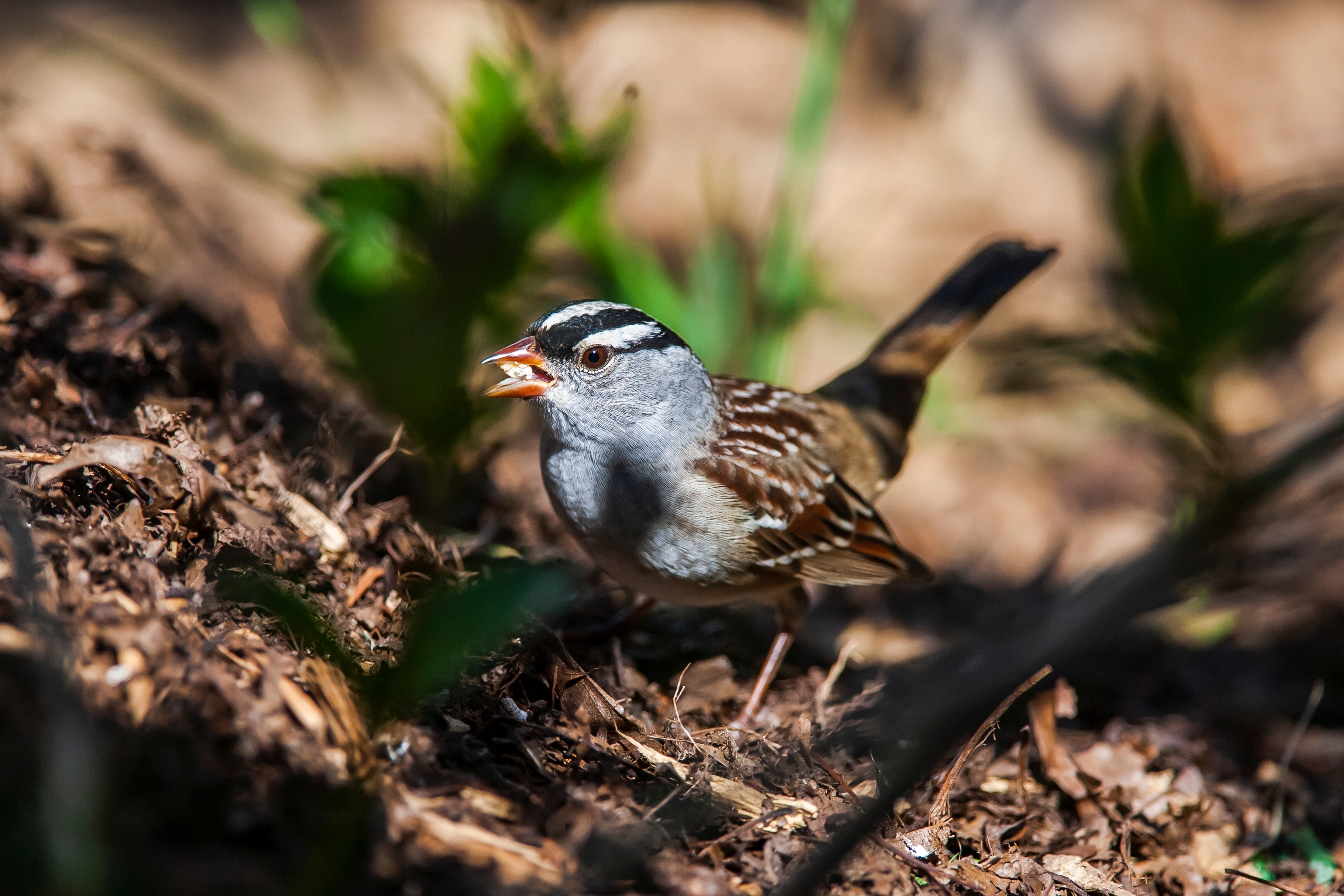 - Sometimes forage with White-crowned Sparrows in the summer, perhaps laying the groundwork for a liaison over dinner
