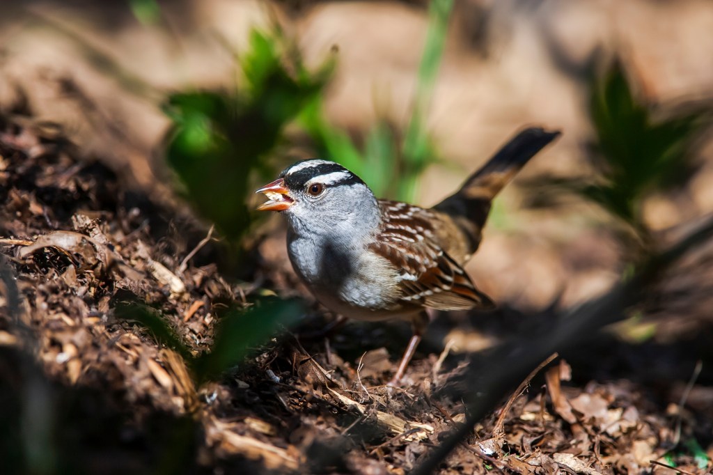 White-crowned Sparrows occur throughout North America, although they’re rare in far-southern Florida, for some reason. Most of them migrate, but some remain year-round in the western mountains and along part of the West Coast. According to allaboutbirds.org, White-crowned Sparrows from Alaska fly all the way to Southern California—about 2,600 miles—to wait out the winter. One bird flew 300 miles in one night.