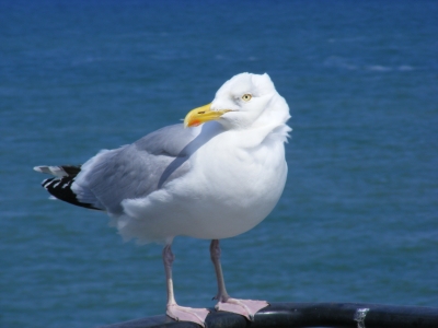 Beyond the Scoters, a small flock of Buffleheads swam away from us. Nearer the Scoters, an Eared Grebe popped to the surface and dove again. On the other side of the pier, we spotted a Horned Grebe and a Red-breasted Merganser. Overhead, the ubiquitous Western Gulls dipped and soared, joined by a few Ring-billed and Herring Gulls.